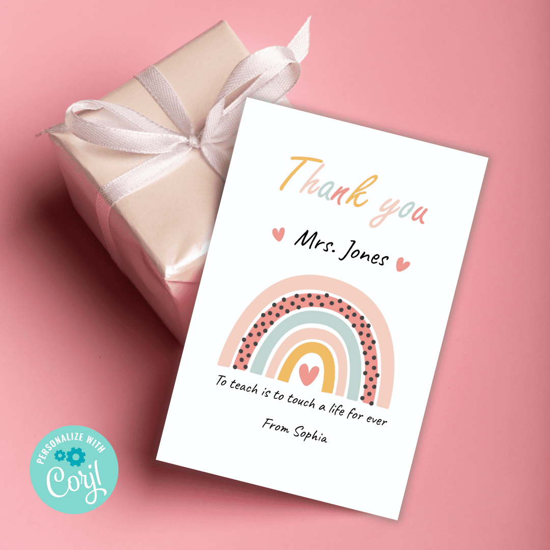 Show your appreciation to the dedicated teachers who shape the future of our children with our stunning Rainbow Thank You Card. Designed with a boho rainbow motif, this downloadable and customizable card allows you to personalize heartfelt messages for your little one’s educators. Perfect for gifting, our cards can be easily printed from the comfort of your home or professional printing service.